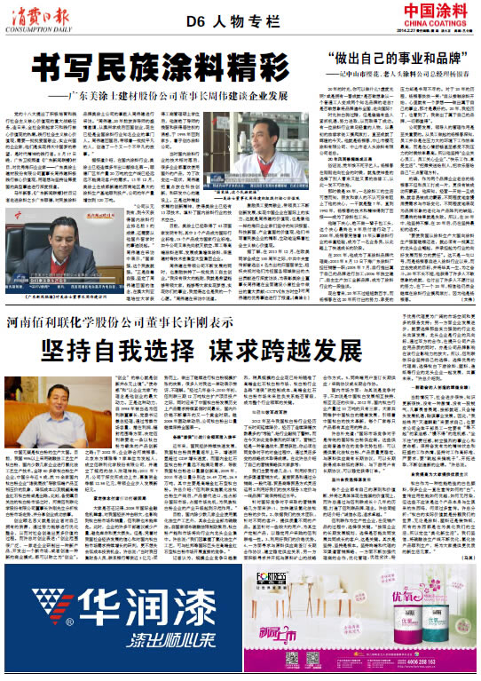 ——廣東美涂士建材股份公司董事長周偉建談企業發展