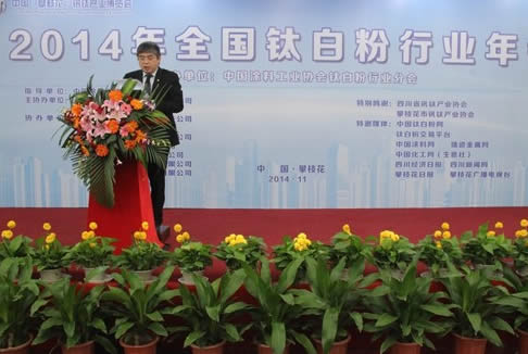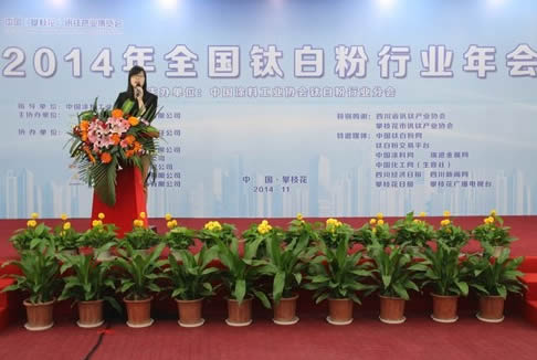 在中國涂料工業(yè)協(xié)會鈦白粉行業(yè)分會郭欣榮秘書長的主持下開始。攀枝花市人民政府常務副市長于會文首先代表東道主攀枝花市向大會致開幕辭,中國涂料工業(yè)協(xié)會秘書長楊淵德代表協(xié)會致辭。