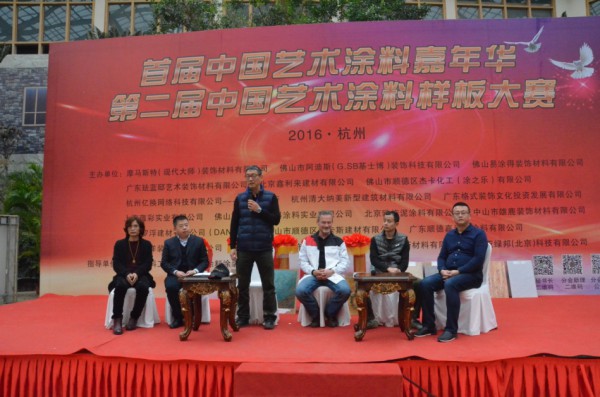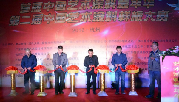 隨著中國涂料工業(yè)協(xié)會(huì)副秘書長劉杰、中國涂料工業(yè)協(xié)會(huì)藝術(shù)涂料涂裝分會(huì)理事長陶文生、秘書長梁海生、杭州裝飾裝修商會(huì)涂料委會(huì)長樓紅龍手中的紅綢飄然落下,標(biāo)志著首屆中國藝術(shù)涂料嘉年華暨第二屆中國藝術(shù)涂料樣板大賽于2016年12月17日在杭州拉開帷幕。浙江省涂料工業(yè)協(xié)會(huì)秘書長馬新華、廣東省涂料行業(yè)協(xié)會(huì)秘書長呂水列應(yīng)邀出席了活動(dòng)啟動(dòng)儀式。來自藝術(shù)涂料企業(yè)代表、涂裝工程師、下游經(jīng)銷商、代理商等共計(jì)將近1 300人參加了此次活動(dòng)。