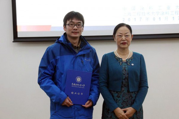 總結報告后,學員代表發言,班長陸威的發言題目是“為涂料知識而來,為責任而去”,談了班上學員組成和總的學習情況,通過學習均得到不同程度提高,同學間能團結互助,結下了較深厚友誼,今后要把學到的知識用到工作中去。學員湯佳發言題目是“感想和總結”,她認為培訓班學習應用基礎理論很有必要,她在完成兩篇涂料配方設計作業的過程中,重新認識了真石漆和水性汽車漆,從成膜機理,到各個成分在涂料成膜過程中所起的作用及添加量,有了新的認識。要設計出滿足客戶要求的涂料配方,就需要我們有相當強的理論知識,通過分析和試驗才能研發出來,這就是我們要學習涂料專業基礎課程的原因。溫紹國教授在培訓班授課受到學員們歡迎和稱贊,他作為教師代表在會上作了熱情的發言。
